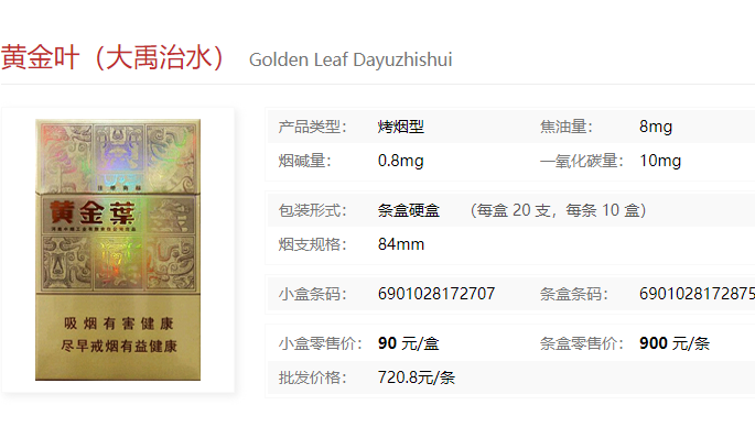 以上就是小编收集到的黄金叶大禹治水价格多少香烟价格表图合集的相关内容,以上数据均来源于网络,仅供参考,小编温馨提示,为了您和家人的健康,请您尽量少吸烟,更多相关信息请关注本站。