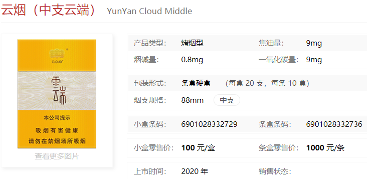 以上就是小编为大家讲解的2021云烟云端中支香烟价格多少一包的相关内容,希望对大家有所帮助。了解更多相关咨询,请关注。小编温馨提示:吸烟有害健康,请您尽早戒烟
