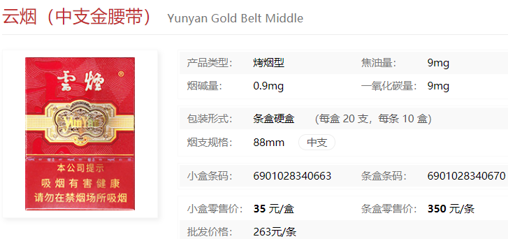 以上就是小编为大家整理的云烟中支金腰带多少钱一包珍品香烟的全部信息,想要了解更多香烟资讯,请关注。