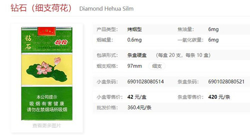 以上就是小编为大家带来有关钻石细支荷花香烟价格表和图片查询一览的相关信息,小编提示信息来源于网络,希望对大家有所帮助,想要了解更多资讯,请持续关注本网站!