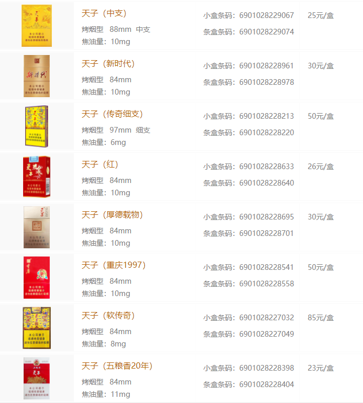以上内容就是小编为大家介绍关于天子香烟价格表2022价格表图片大全集的相关资讯,以上内容整理于网络,想了解更多相关资讯,请持续关注本网站!